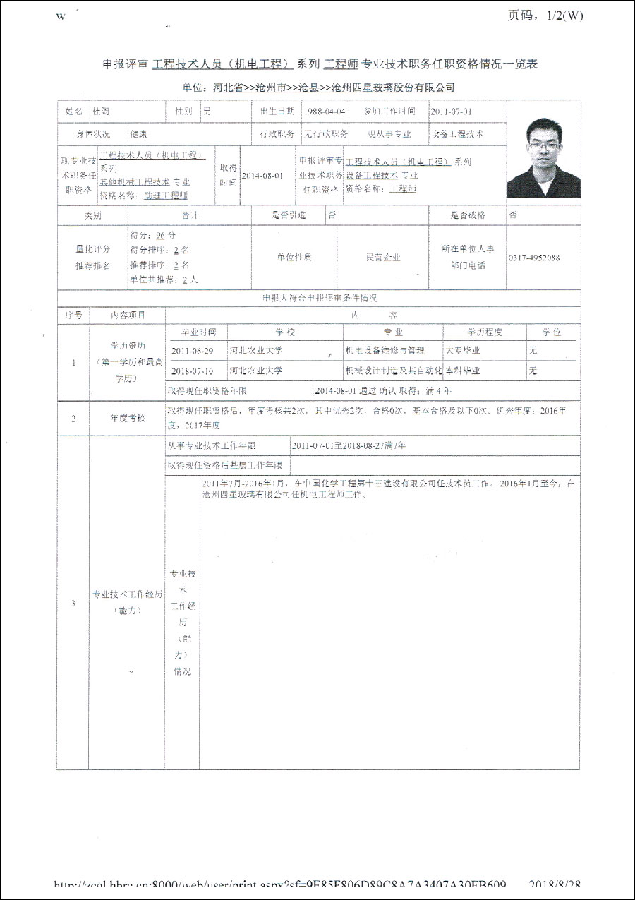 2018年職稱申報人員公示信息