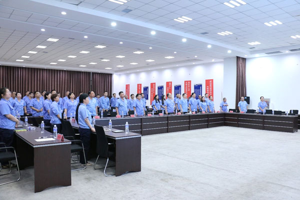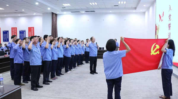 (黨支部書記、董事長王煥一領(lǐng)誓) “起來,不愿做奴隸的人們……”在嘹亮而莊嚴(yán)的國歌聲中,大會正式開始。“我志愿加入中國共產(chǎn)黨,擁護(hù)黨的綱領(lǐng),遵守黨的章程……”在公司黨支部書記、董事長王煥一領(lǐng)誓下,全體黨員重溫入黨誓詞,堅(jiān)定有力的聲音響徹全場。