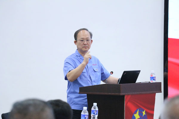(嚴(yán)老師授課) 宣誓后,受公司邀請和中共滄州市委黨校指派,黨校二級調(diào)研員嚴(yán)志海教授進(jìn)行專題講座。對黨史中的各個重要?dú)v史事件進(jìn)行了深入淺出的講解。